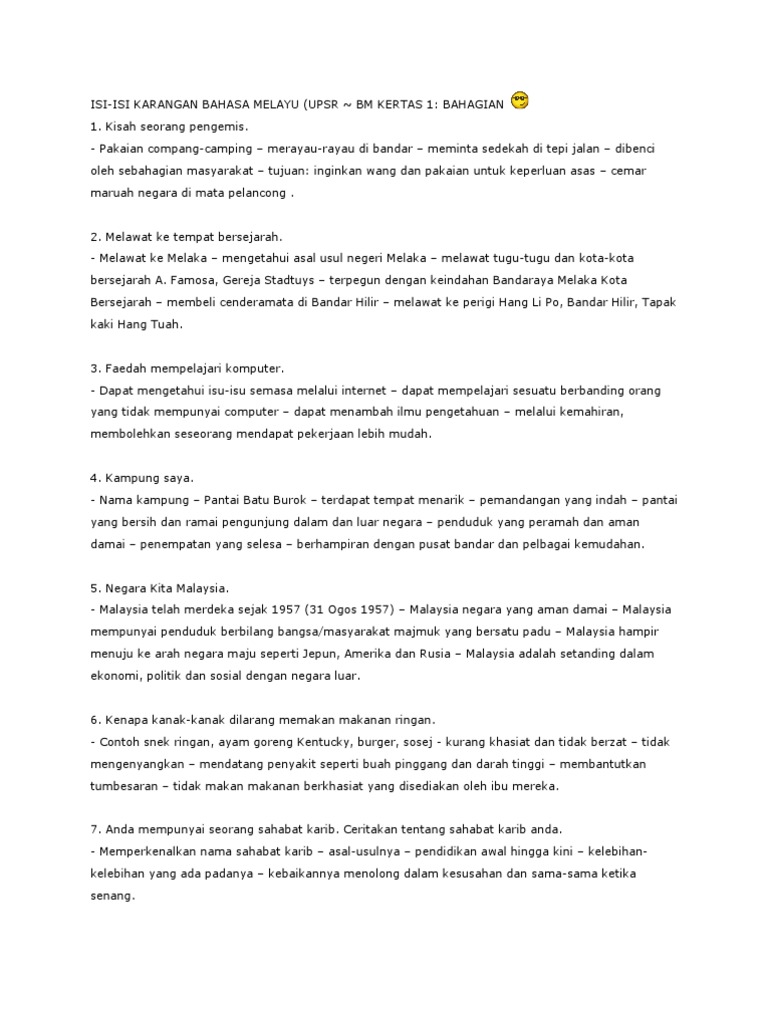 Contoh Karangan Upsr Terbaik Bahasa Melayu In 2020