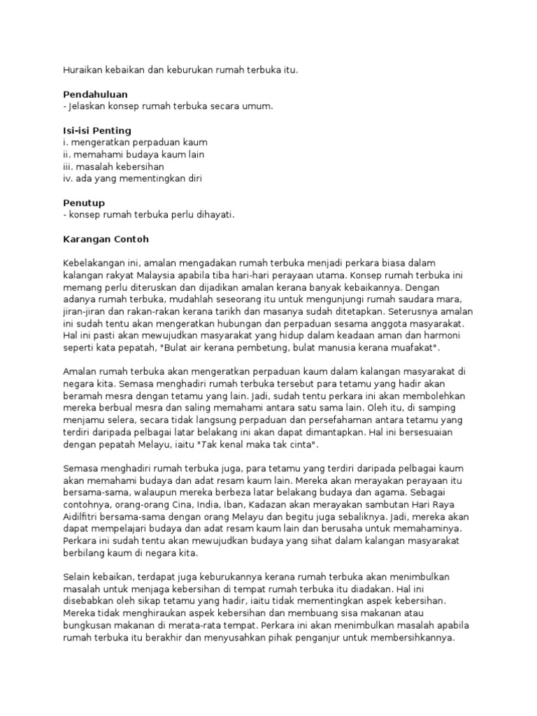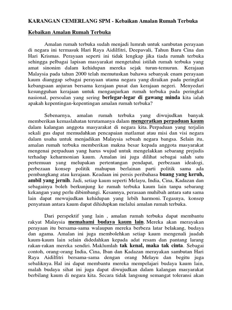 Doc Karangan Cemerlang Spm Kebaikan Amalan Rumah Terbuka Najat