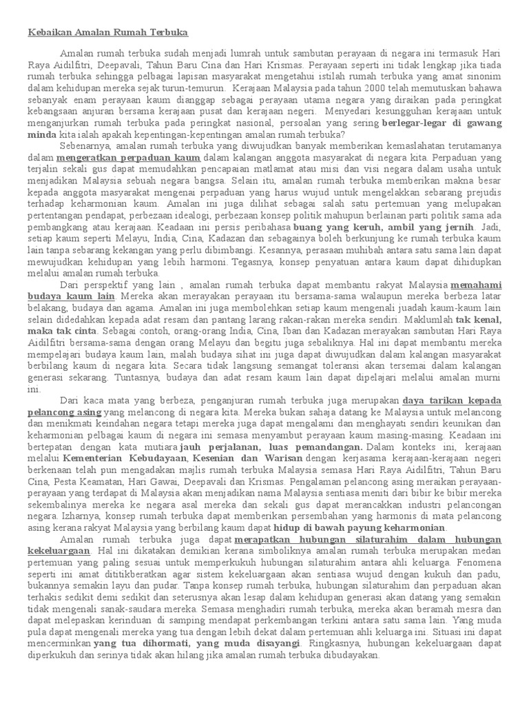 Doc Karangan Cemerlang Spm Kebaikan Amalan Rumah Terbuka Najat