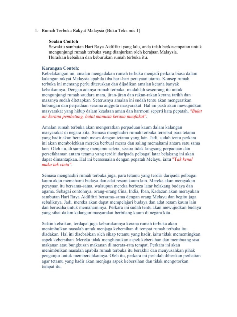 Laman Bahasa Melayu Spm Karangan Kepetingan Rumah Terbuka Di Malaysia