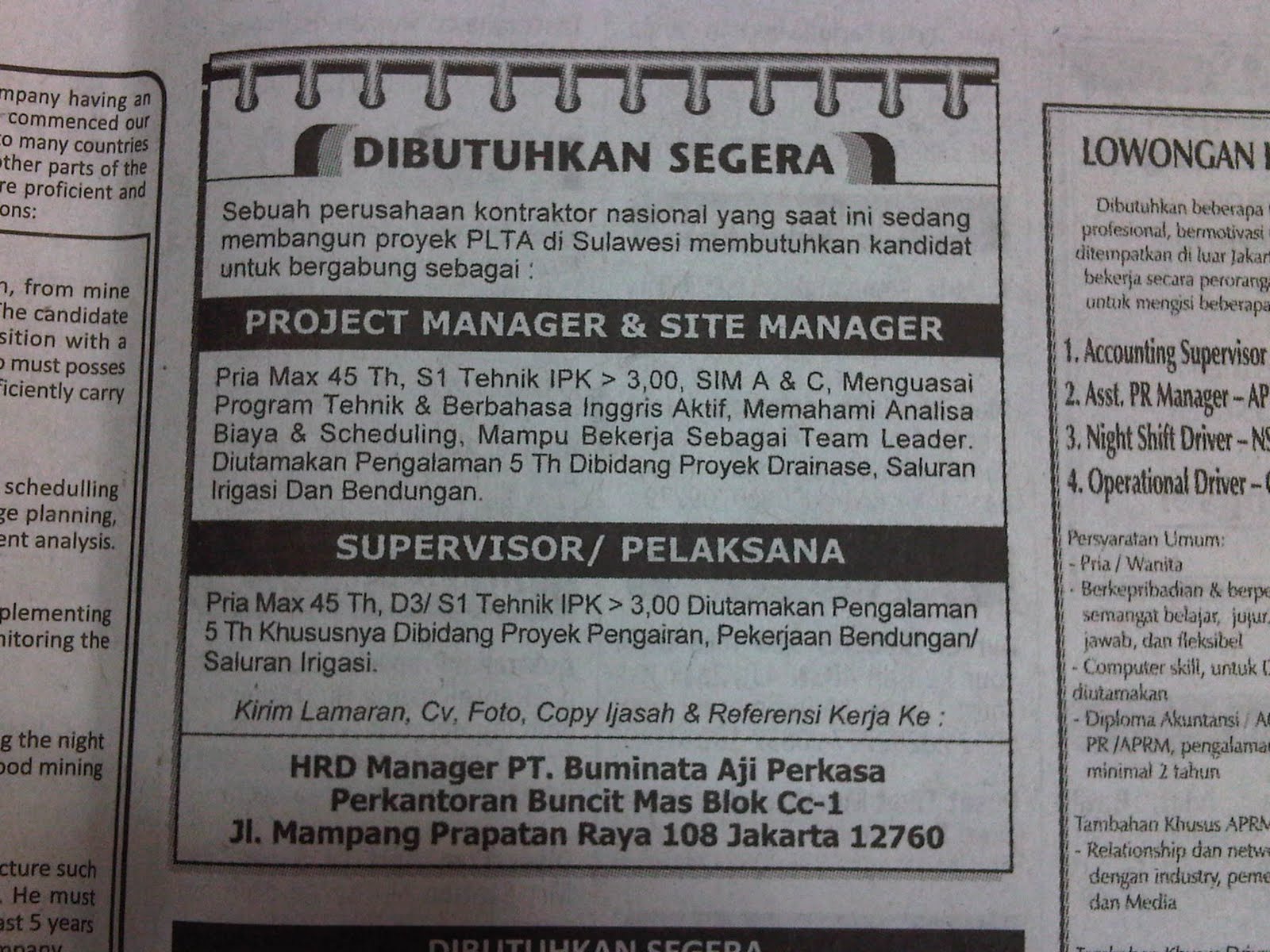 Lowongan Kerja Tamatan Sma Sederajat Dan D3 S1 Di Pt Kawasan