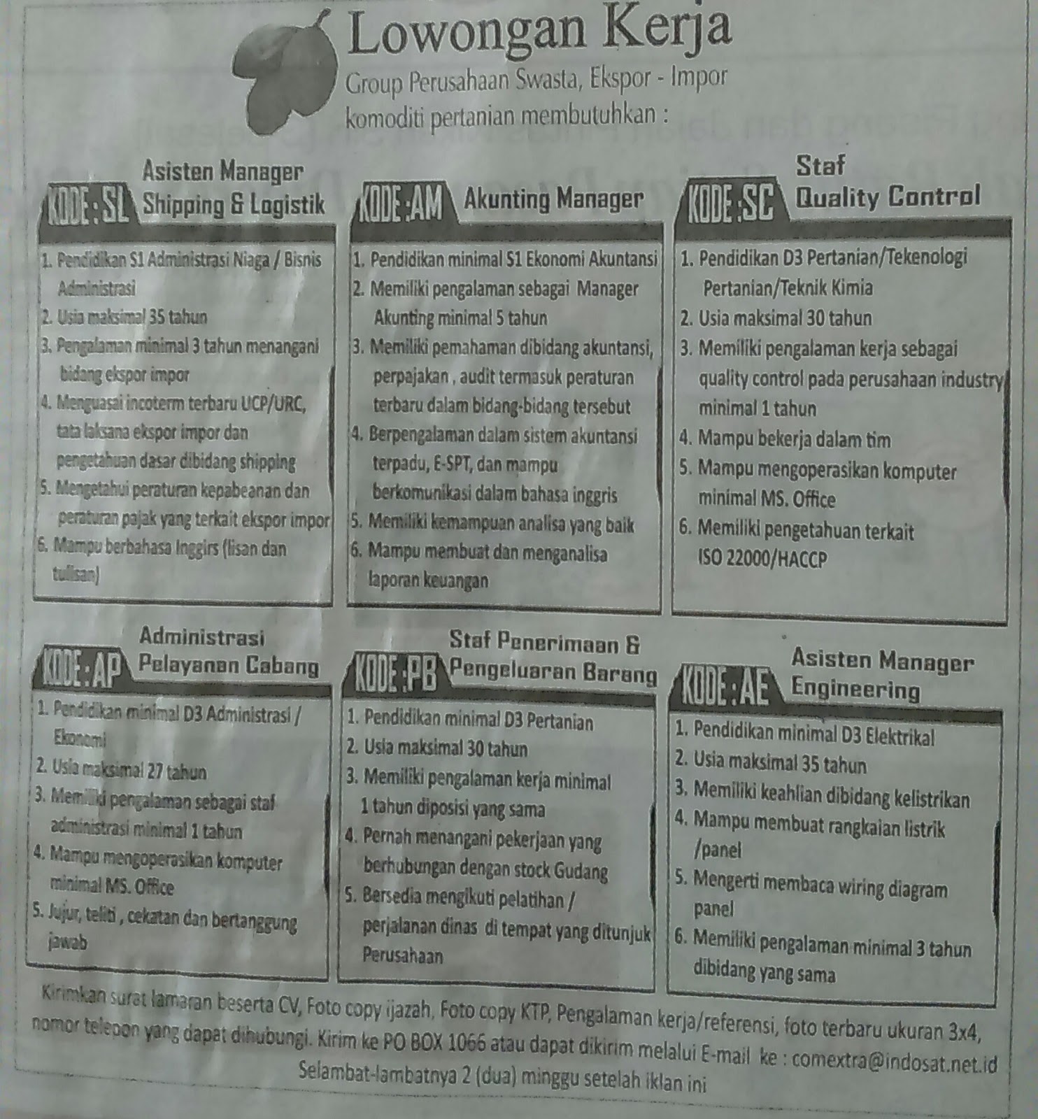 Info Lowongan Kerja Makassar Lowongan Kerja Perusahaan Ekspor