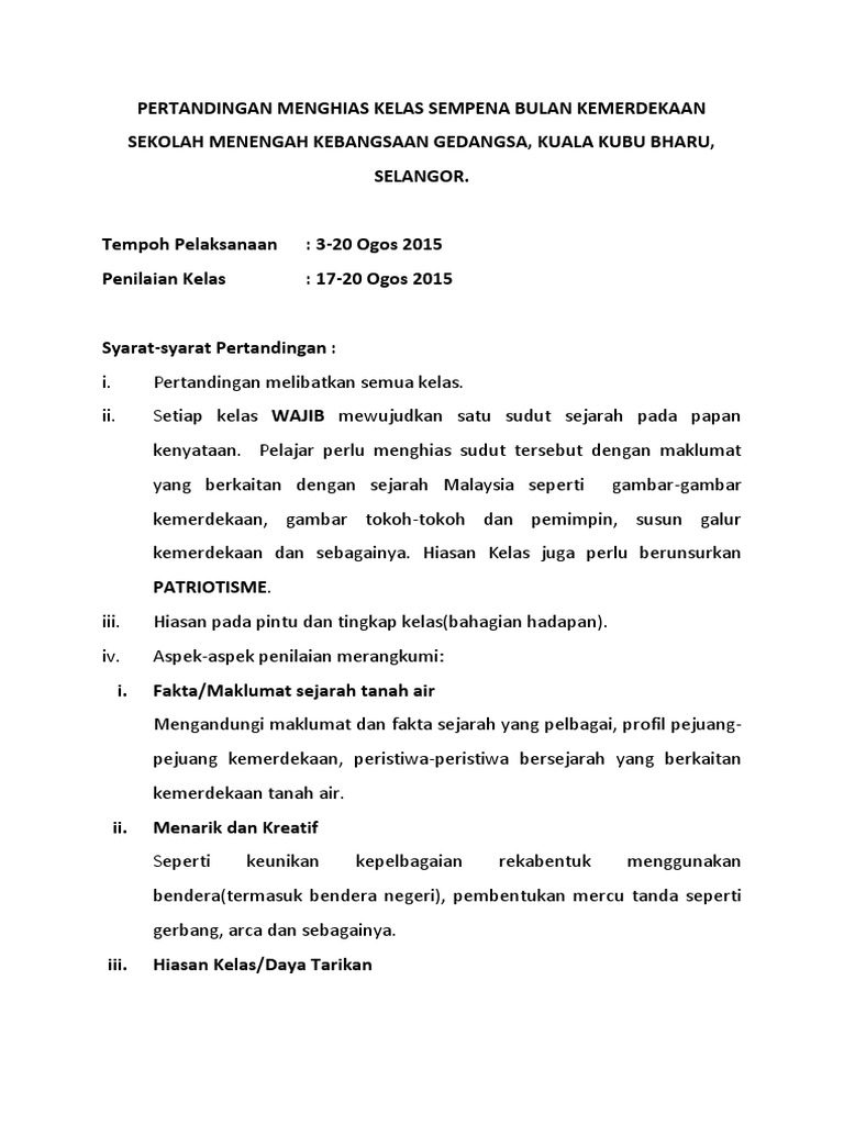 Pertandingan Menghias Kelas Sempena Bulan Kemerdekaan