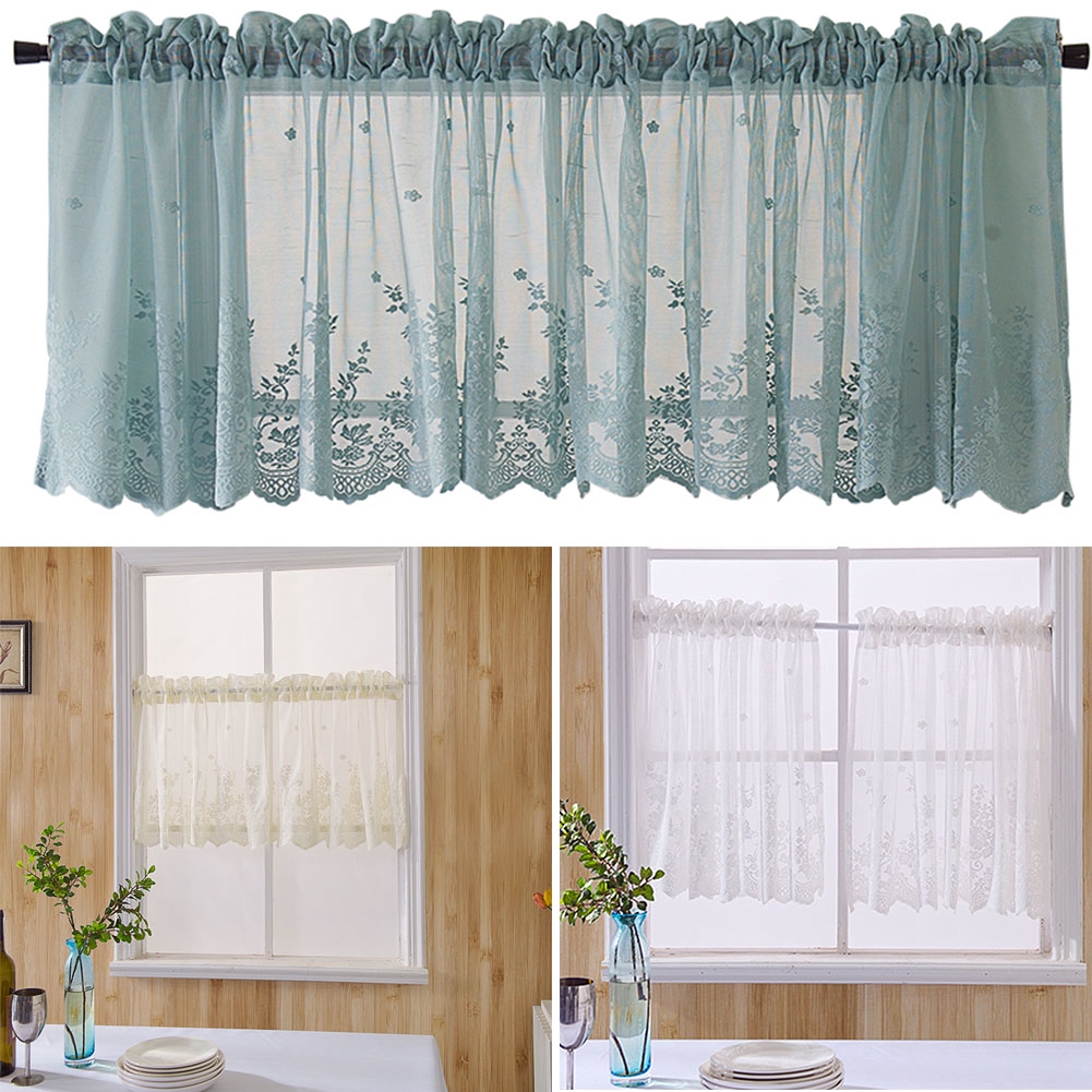 Stylish Simple Short Soft Diaphanous Lace Floral Curtain Kitchen