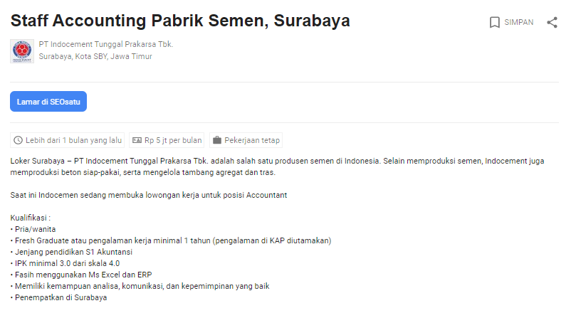 Rekrutmen Lowongan Kerja Pt Indocement Tunggal Prakarsa Pusat