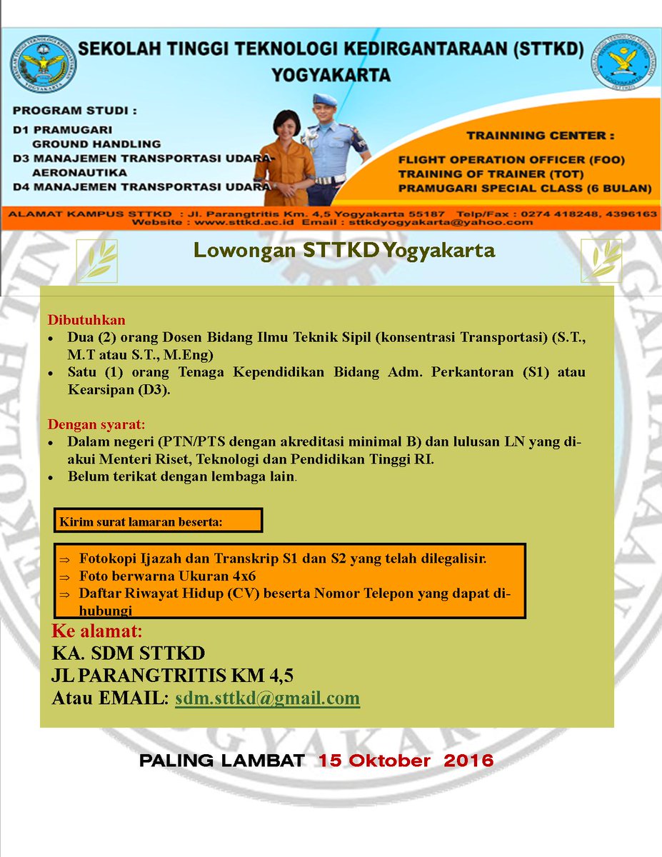 Lowongan Dosen Dan Tenaga Administrasi Sttkd Yogyakarta 2016