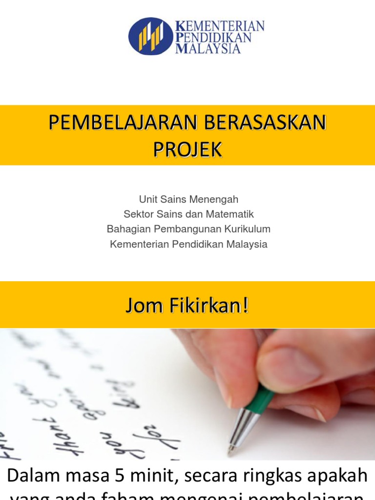 Contoh Pembelajaran Berasaskan Masalah Projek Kssm Sains