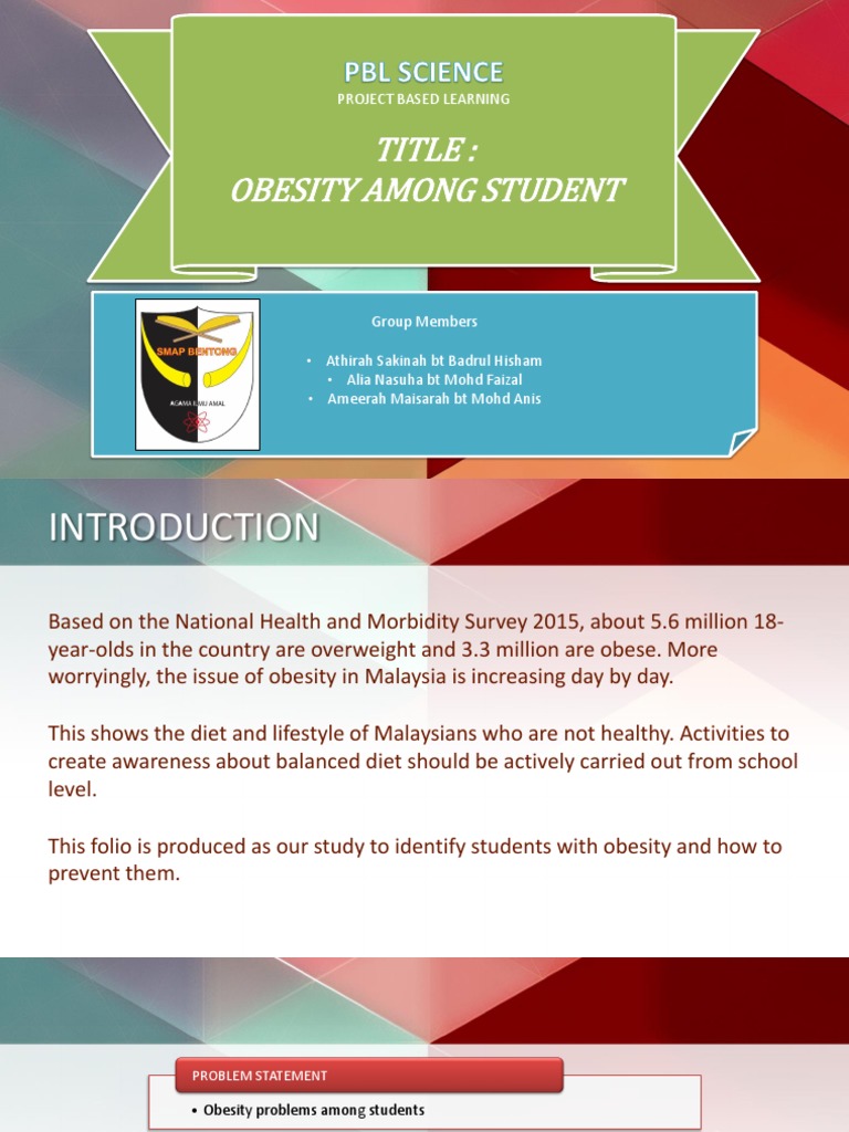 Pembelajaran Berasaskan Projek Kajian Obesiti Di Sekolah