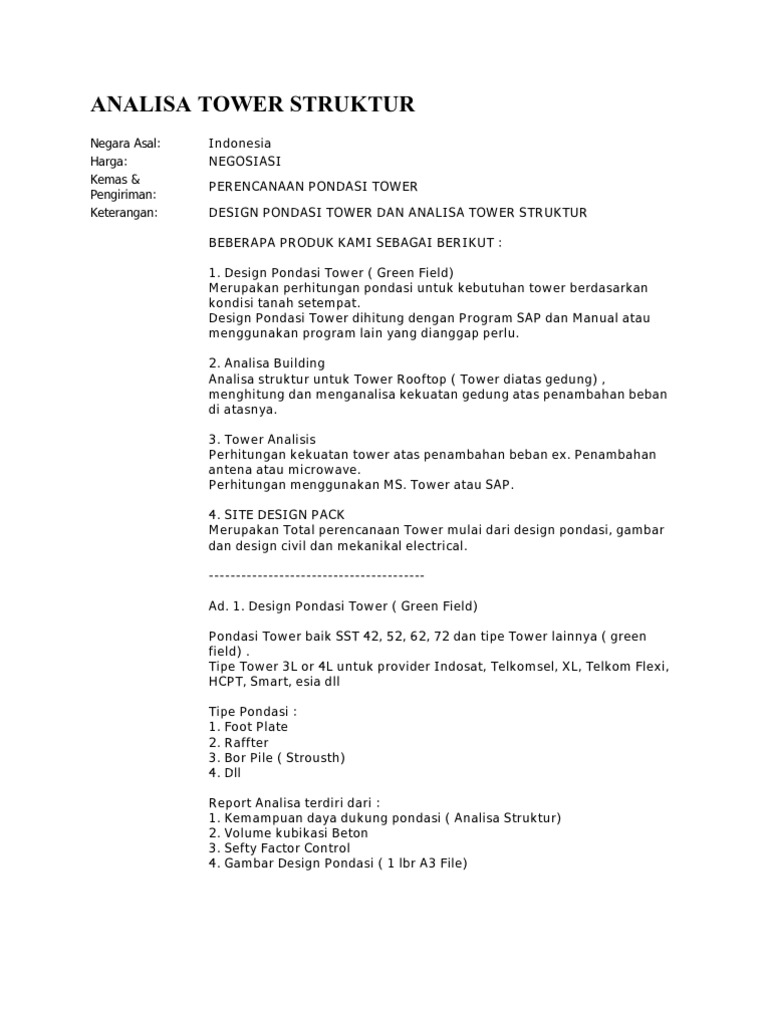 Analisa Perencanaan Menara Saluran Udara Tegangan Tinggi Tegangan