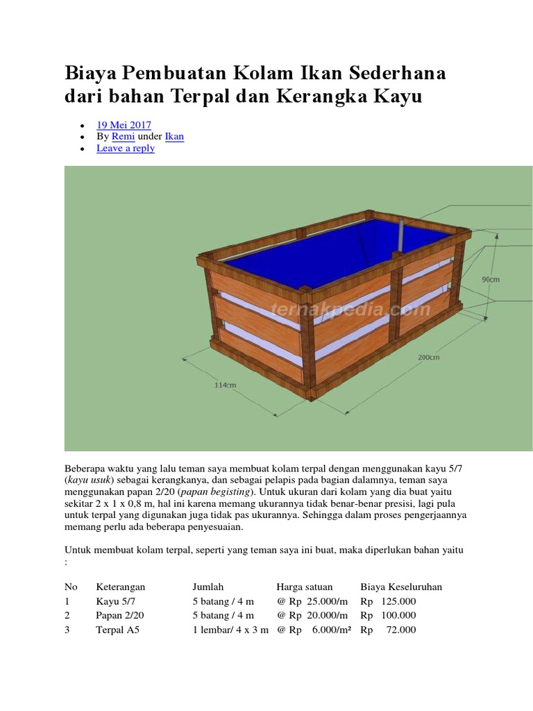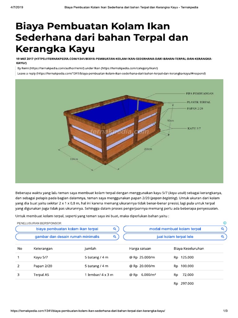 Biaya Pembuatan Kolam Ikan Sederhana Da Terpal Dan Kerangka