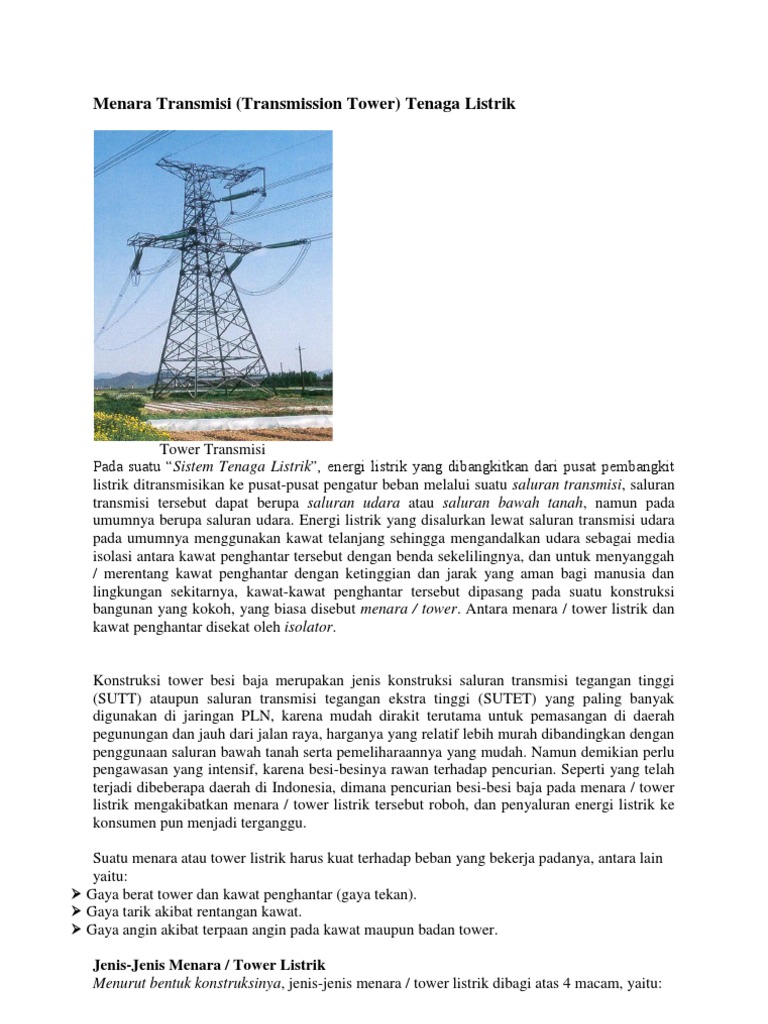 Sekedar Berbagi Ilmu Menara Transmisi Transmission Tower Tenaga